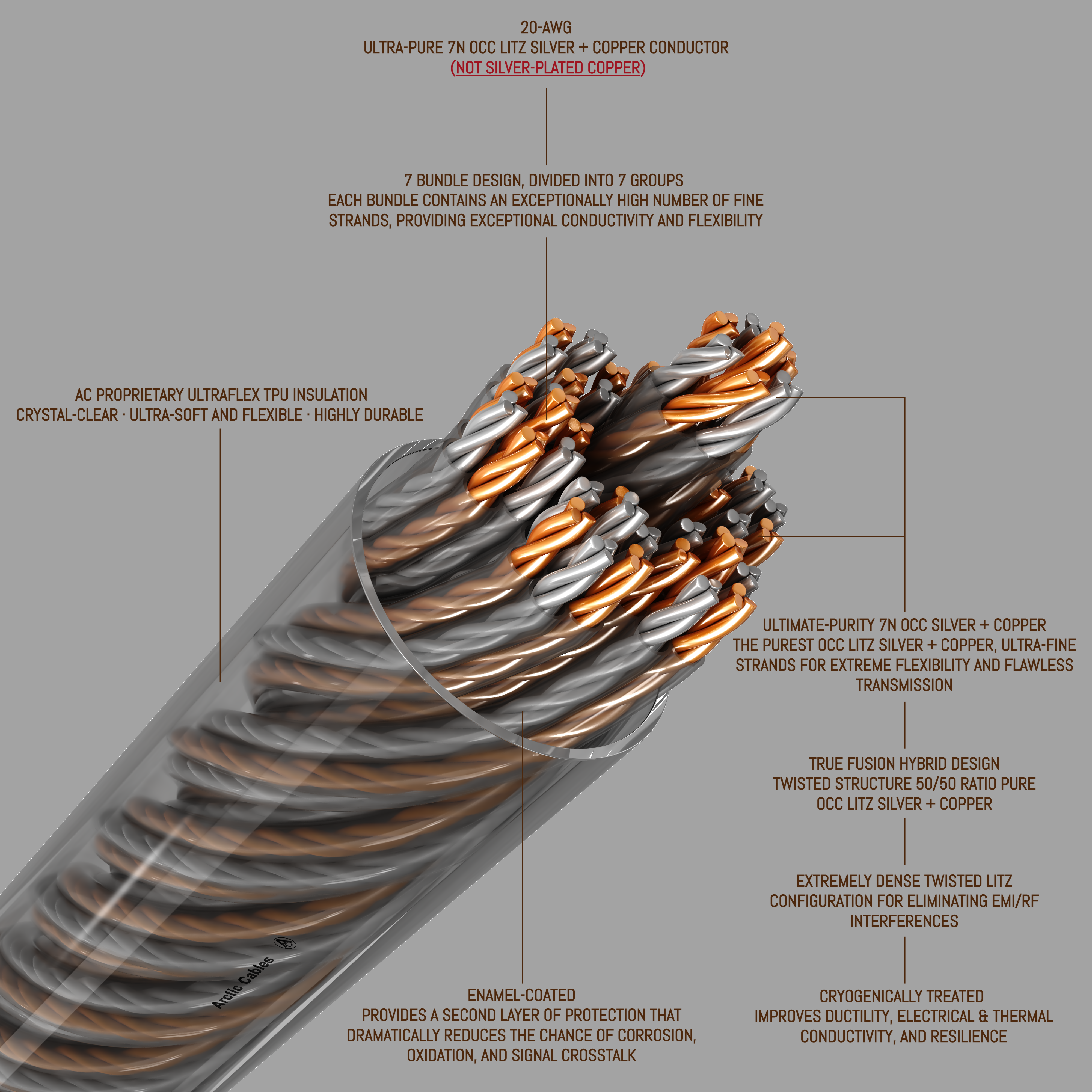 - X4-wire 20-AWG pure silver+copper OCC Litz 50/50 hybrid